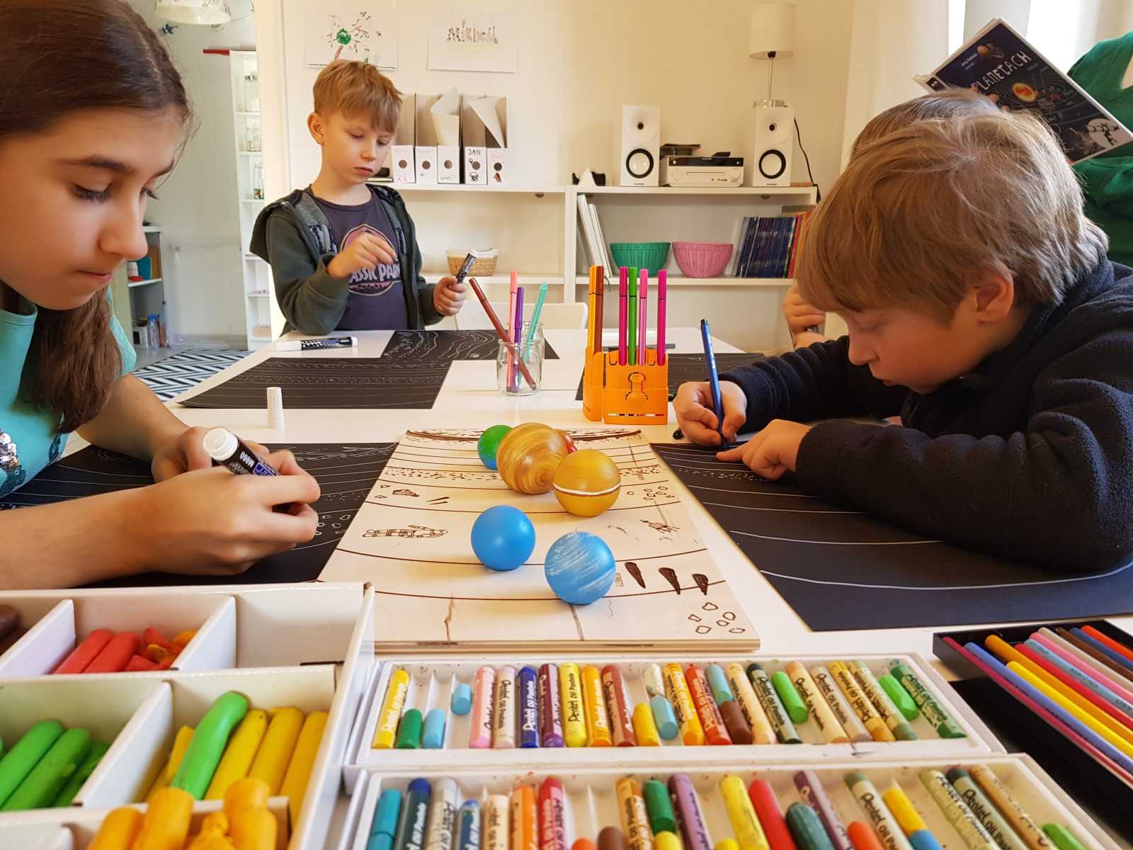 Oto nasz plan pracy: 1. integracja przy herbatce 2. Mały trening umiejętności społecznych 3. Warsztaty przedmiotowe (j.polski, matematyka,przyroda,historia) z wykorzystaniem autorskich pomysłów inspirowanych metodą Montessori 3. Praca własna w ciszy z wykorzystaniem pomocy Montessori 4. Podsumowanie dnia. Prezentacja projektów stworzonych podczas pracy własnej.